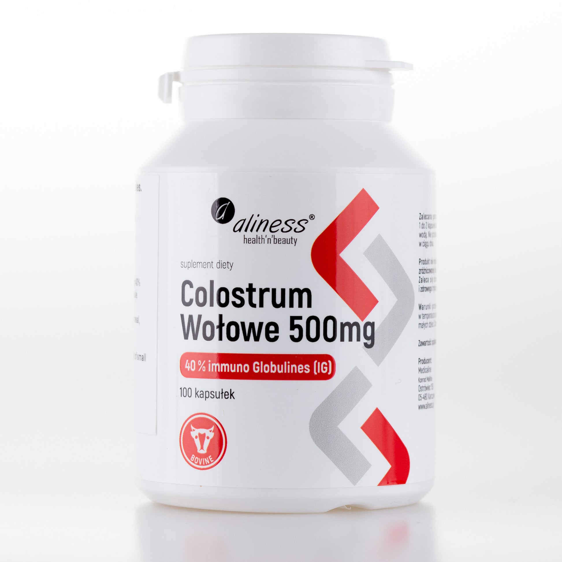 Aliness Colostrum Wołowe IG 40% 500 mg, 100 kapsułek