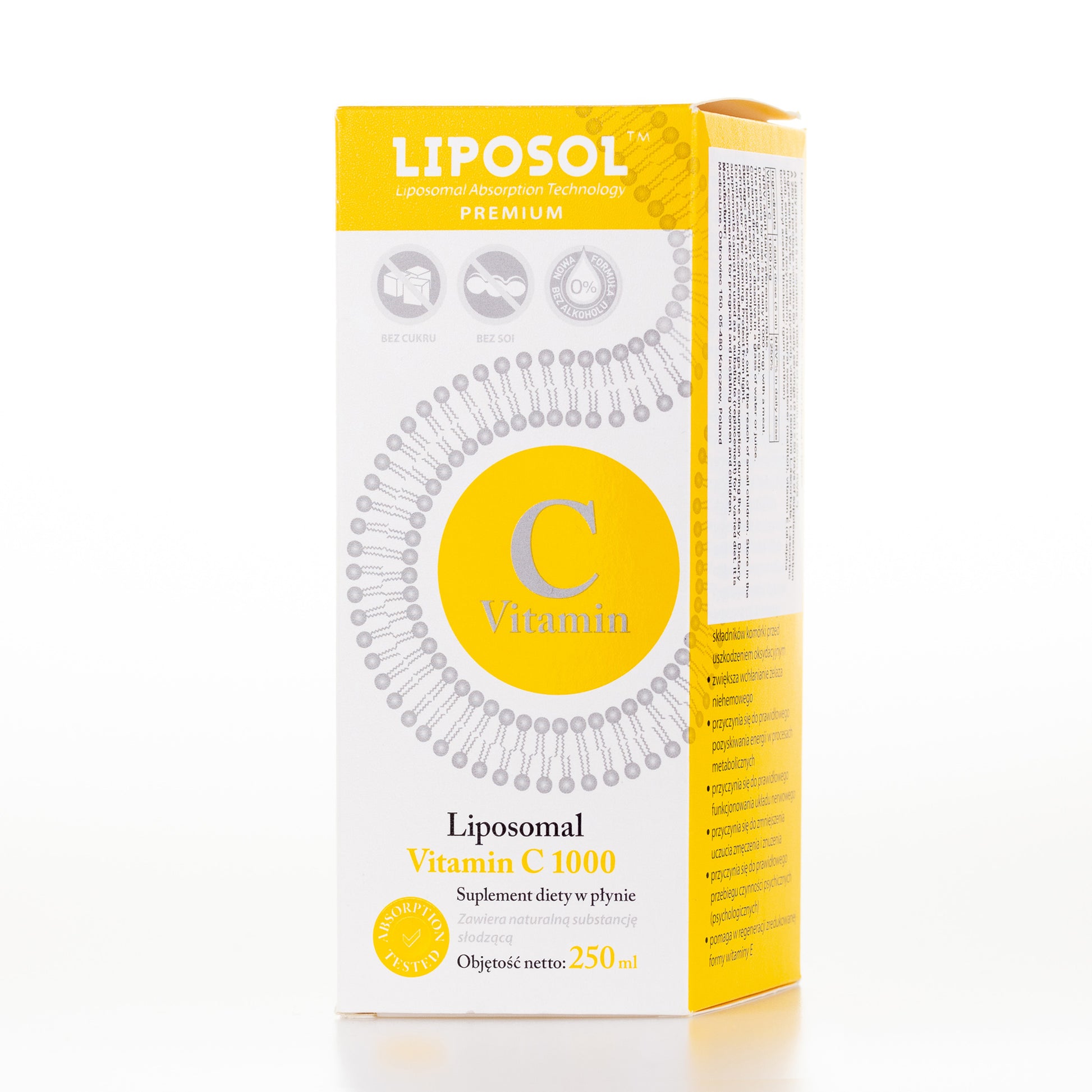 Witamina C LIPOSOL C 1000TM został zamknięty w liposomach. Liposomy to małe cząsteczki lipidów (globulki), które powstają naturalnie, gdy woda wchodzi w kontakt z lecytyną, składnikiem soi niezmodyfikowanej genetycznie. Liposomy są łatwo przyswajalne przez organizm. Gdy witamina C zostanie rozpuszczona w wodzie i zmieszana z lecytyną, następuje proces enkapsulacji liposomalnej. Efektem jest lepsze wchłanianie witaminy C do krwi i bezpośrednio do ścian komórkowych.