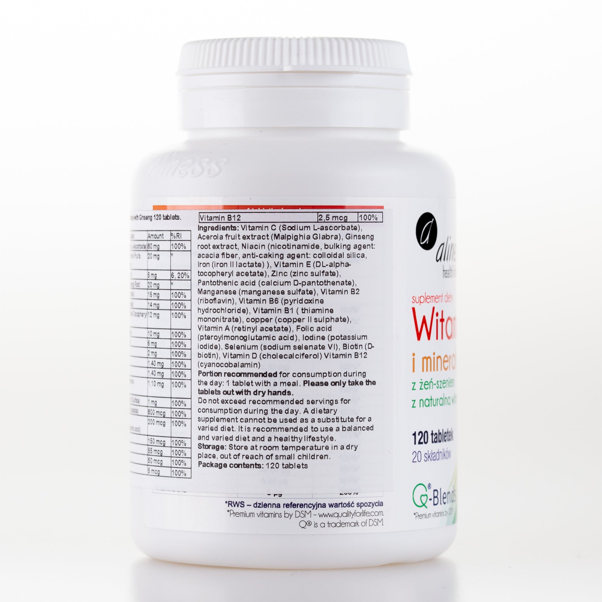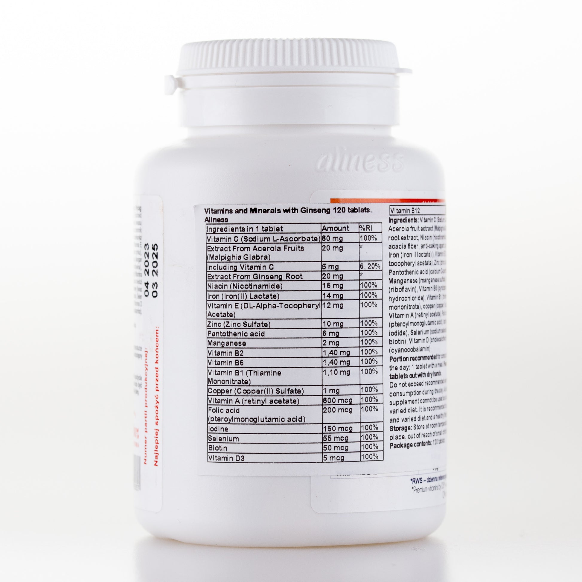 Aliness Witaminy i minerały z żeń szeniem 100%, 120 tabletek