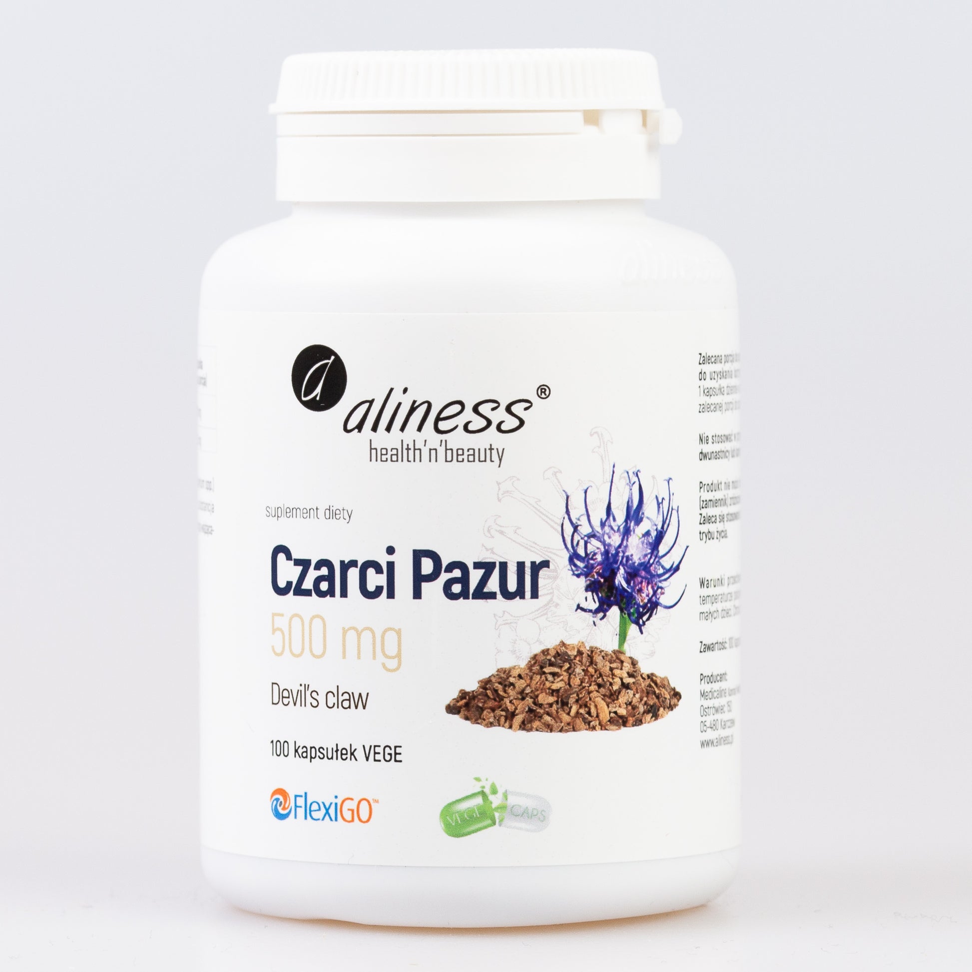 Patented FlexiGo™ extract produced in the European Union used in the Aliness Harpagophytum food supplement, it provides a high content of harpagosides in a daily dose.