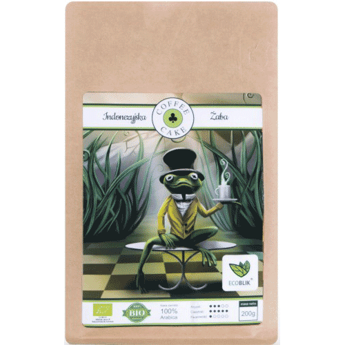 Indonesian frog coffee is grown on small Indonesian plantations, where the coffee bushes are shielded from excessive light by the higher parts of the plants. This coffee is characterized by full body and low acidity. Indonesian frog coffee has the taste of bitter cocoa and raisins, and the aroma of cedar wood and tobacco is felt in the floating aroma.